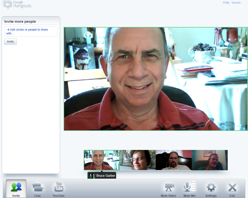Google Hangouts, the group videoconferencing part of Google+, has attracted some of the most creative minds on the Web – and these folks are putting their ingenuity to good use. One of the first out of the gate is Bruce K. Garber and his friends from the Southern New England Media Makers. They captured this video of their group videoconference by using Camtasia Studio and uploaded this video to Youtube. The sound quality is surprisingly clear considering that they were using the condenser mics built into their webcams. I’m wondering how clear their audio would sound if they each used a USB microphone, such as a USB Logitech headset or a Snowball microphone. Here are the other participants in this video chat.