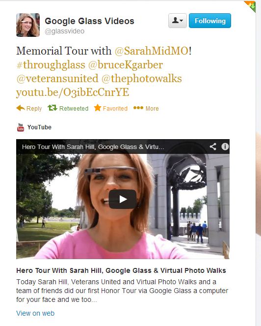 Tags: brucegarber, Glass, Glassvideo, Google+, GoogleGlass, Memorial, MemorialTour, sarahhill, Throughglass, twitter, video, WWII, WWIIMemorial